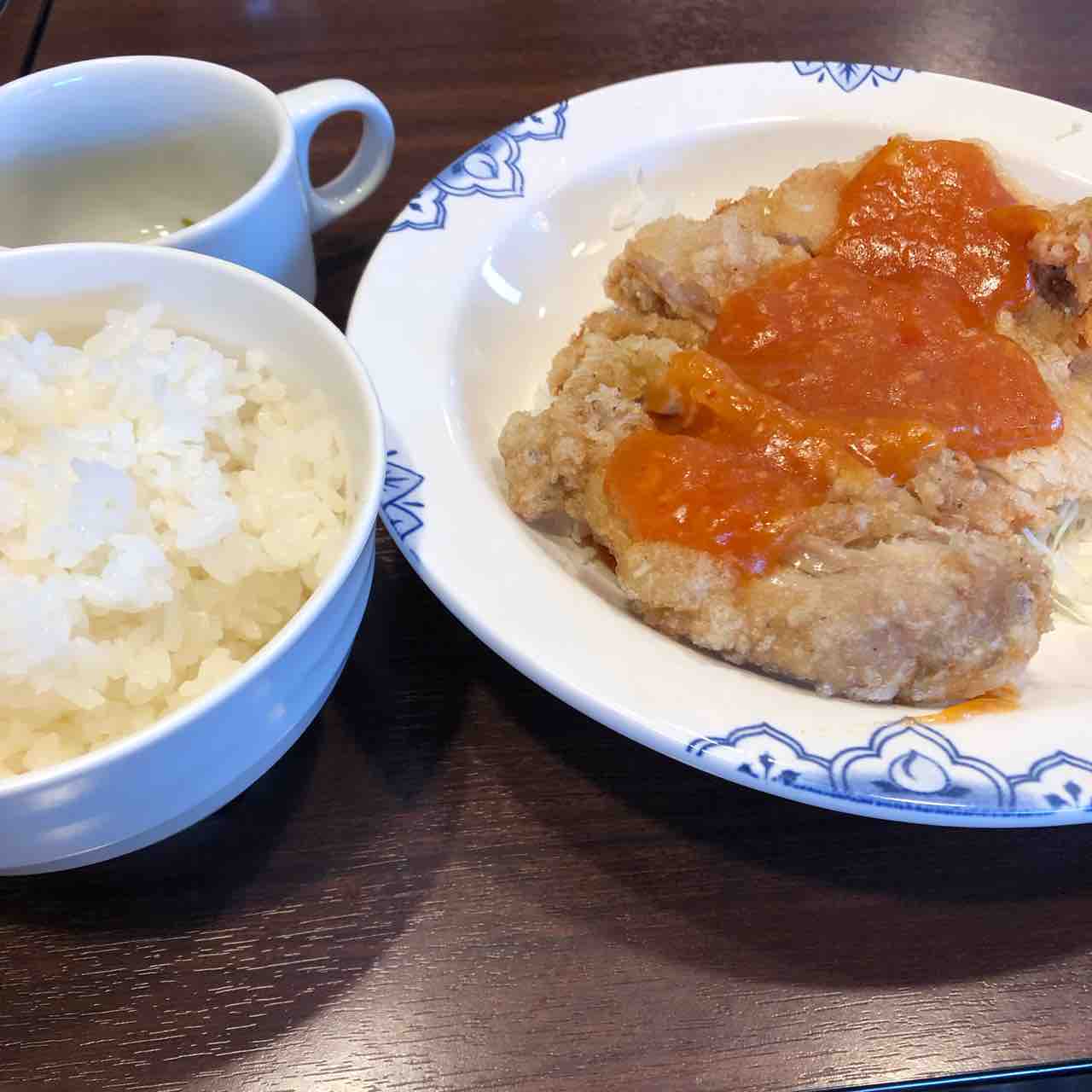 チキンのチリソースかけでしたが何かマヌケな味。