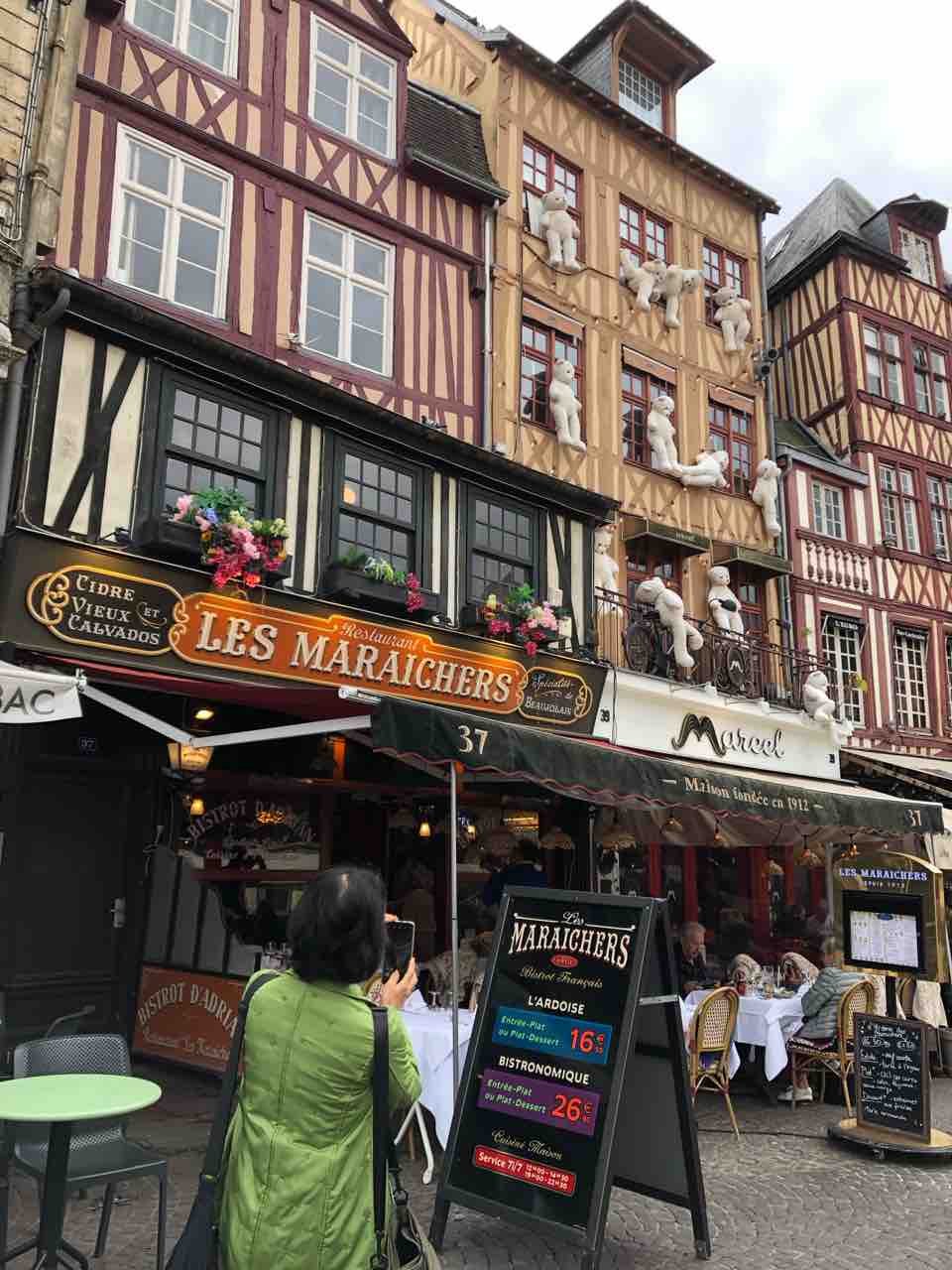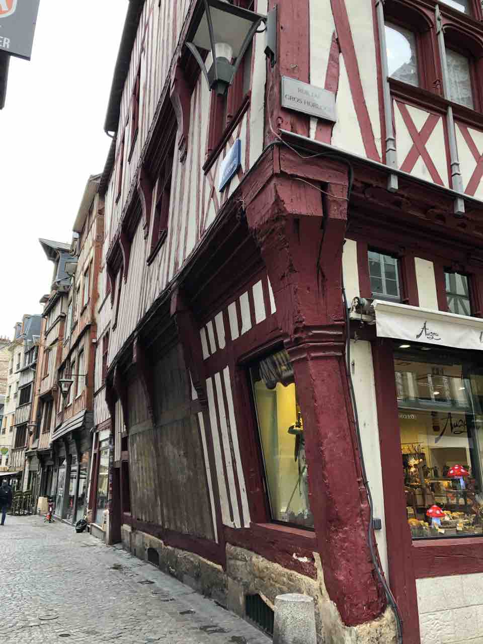 ルーアン名物木組みの家。地震のない国だからこんな状態もあり(耐震改造施し済みと日本人ガイドのみどりさん)