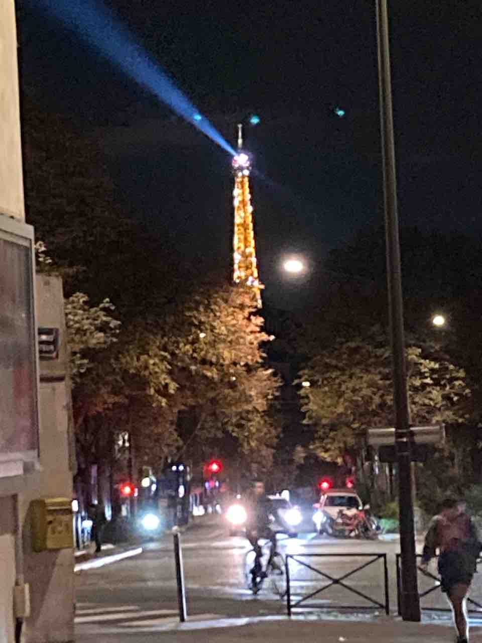 エッフェル塔のシャンパンフラッシュを見にホテルの近所を相方さんと歩きました。