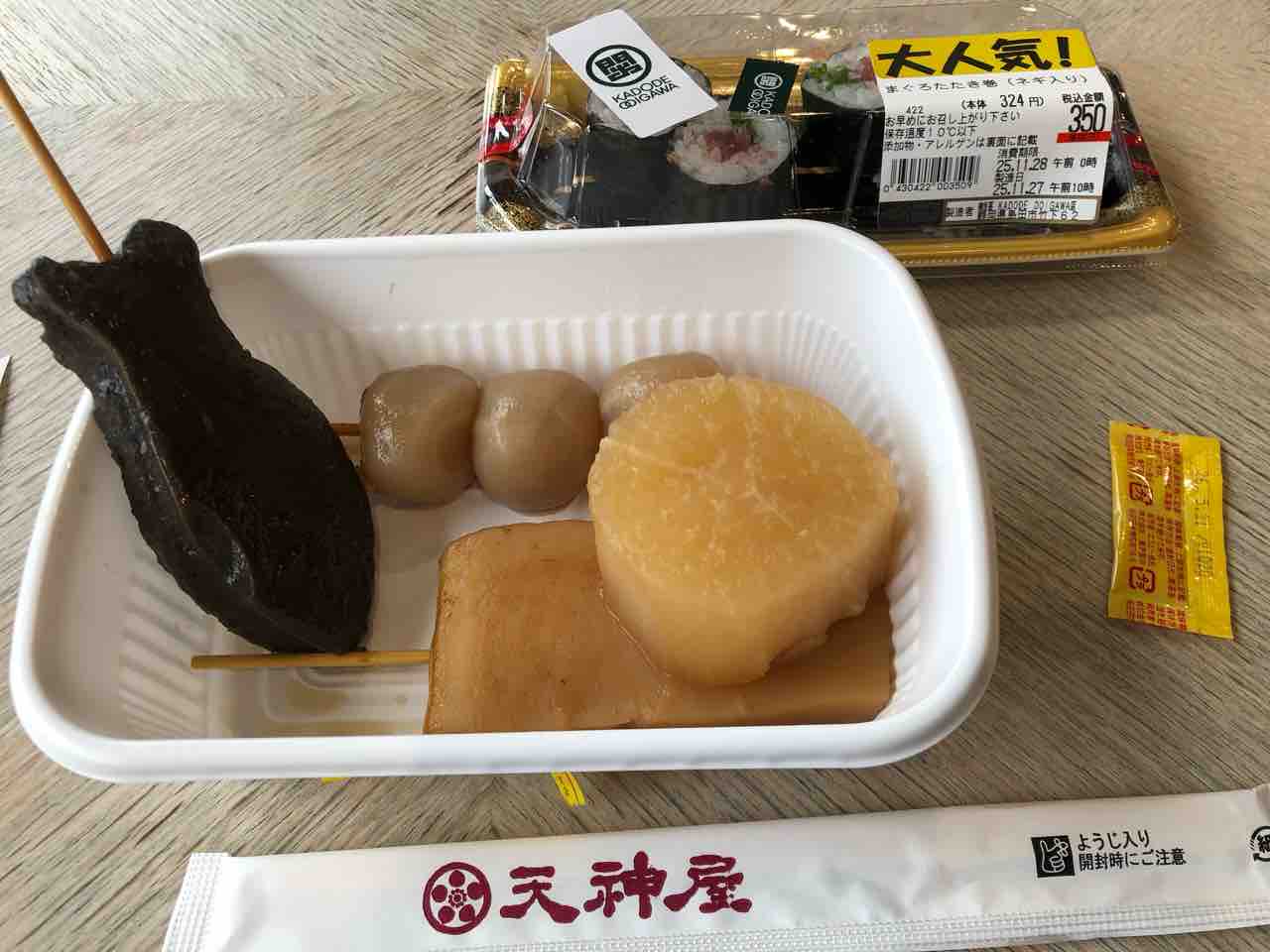 好きなものを選んだしぞーかおでんとネギトロ巻。