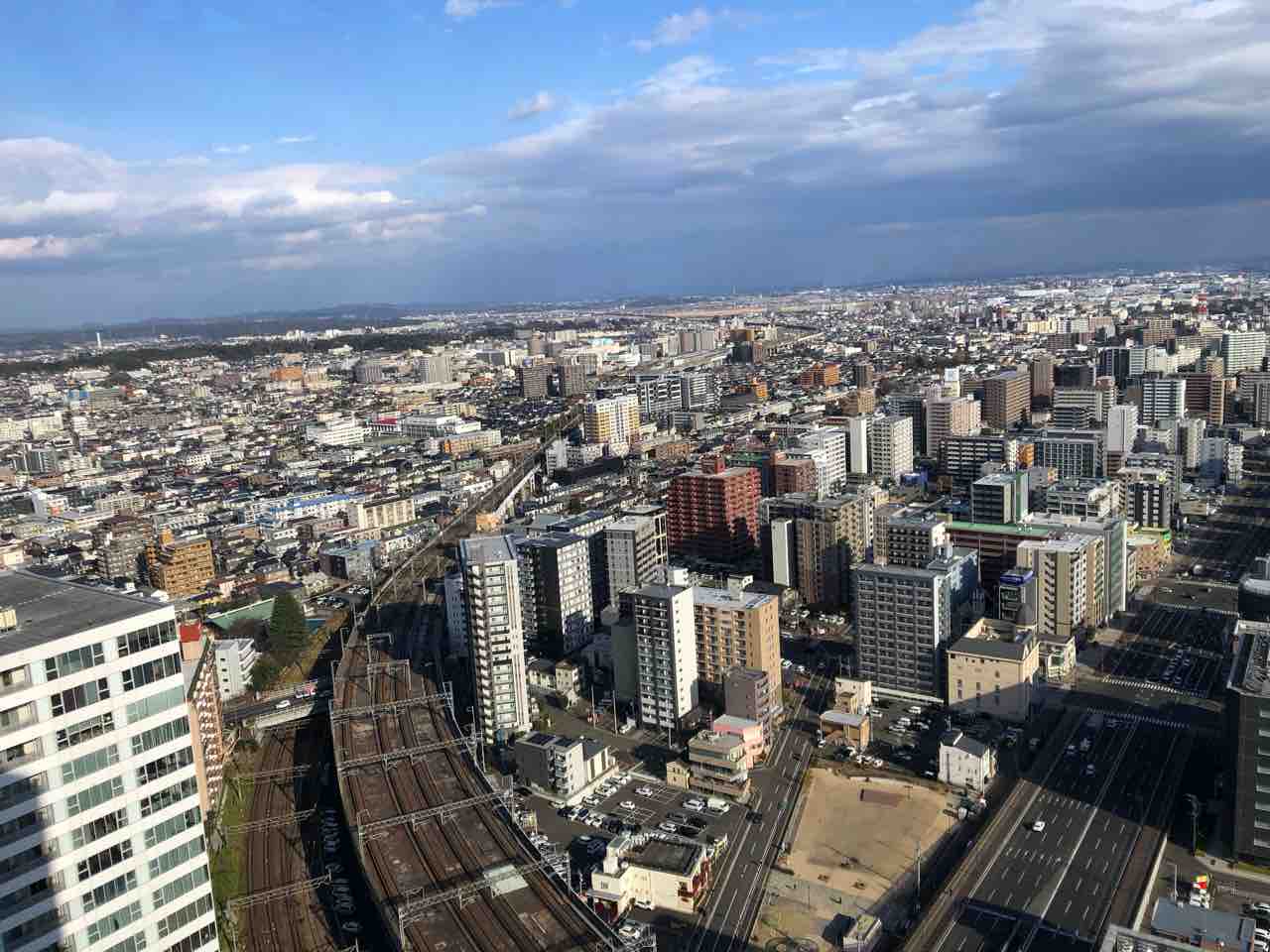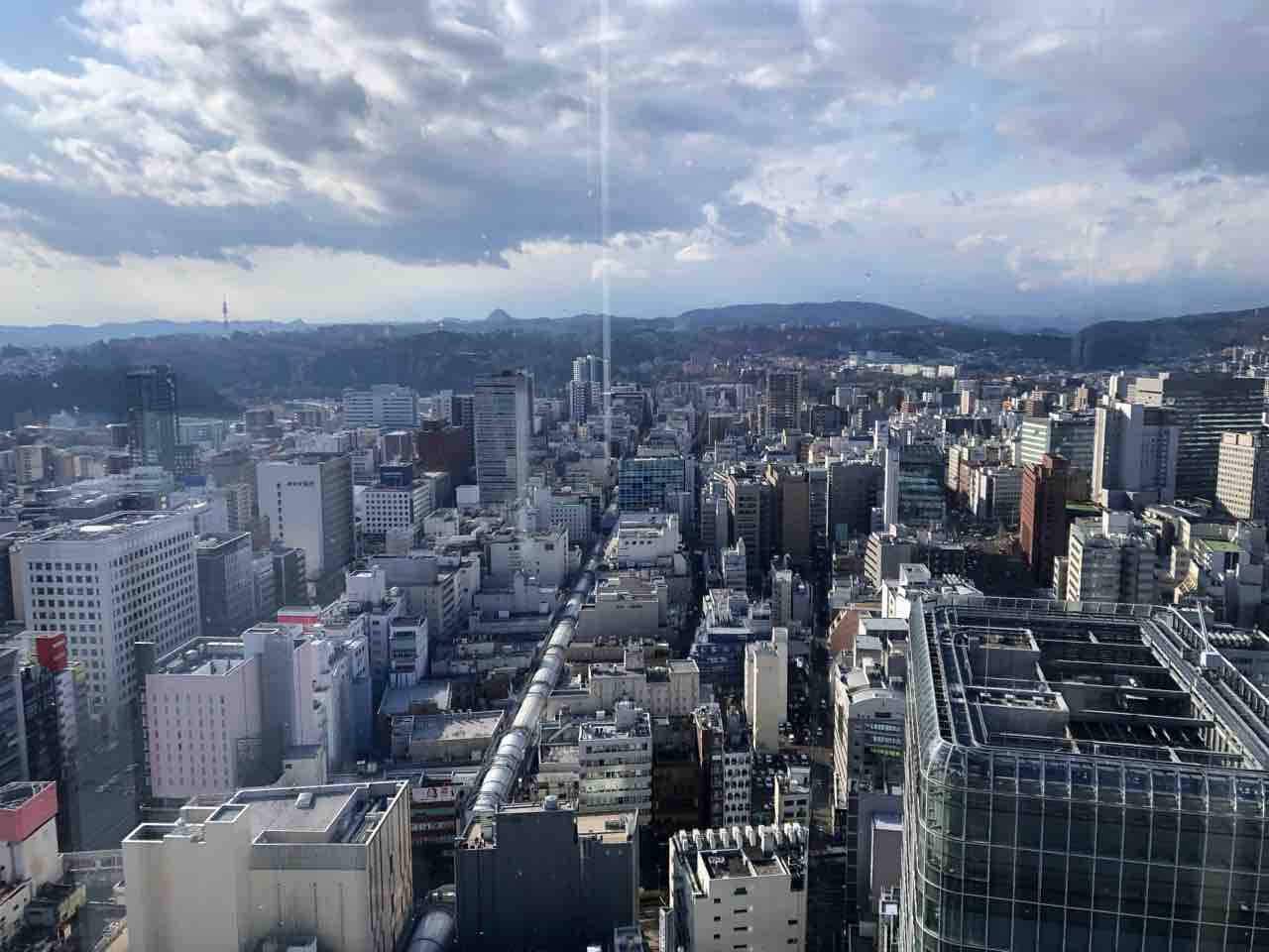 仙山線に若干の遅れが生じて、もともとたっぷりとは言えない観光時間がさらに短くなったので、西口にあるアエル(AER)と言う高層ビルの最上階、31階の展望テラスに上がりました。
