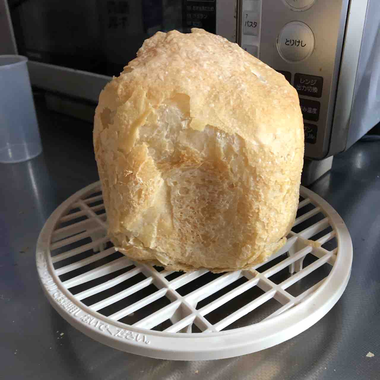 水+強力粉+砂糖+塩+スキムミルク+大匙1杯のオリーブ油+ドライイーストで普段はこんな感じの焼き上がりになります。