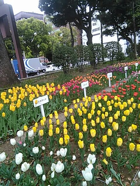 当地のソメイヨシノはほぼ終了しました。先週、ランチビュッフェの折、友人が「今チューリップがきれい」と写真を見せてくれた横浜公園のチューリップもどうやら例年より早めみたいです。