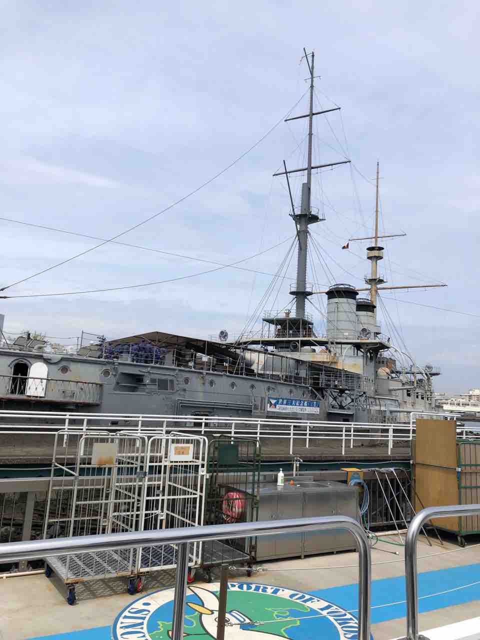 横須賀の米軍基地の程近く、日露戦争、日本海大戦の旗艦三笠が見えます。