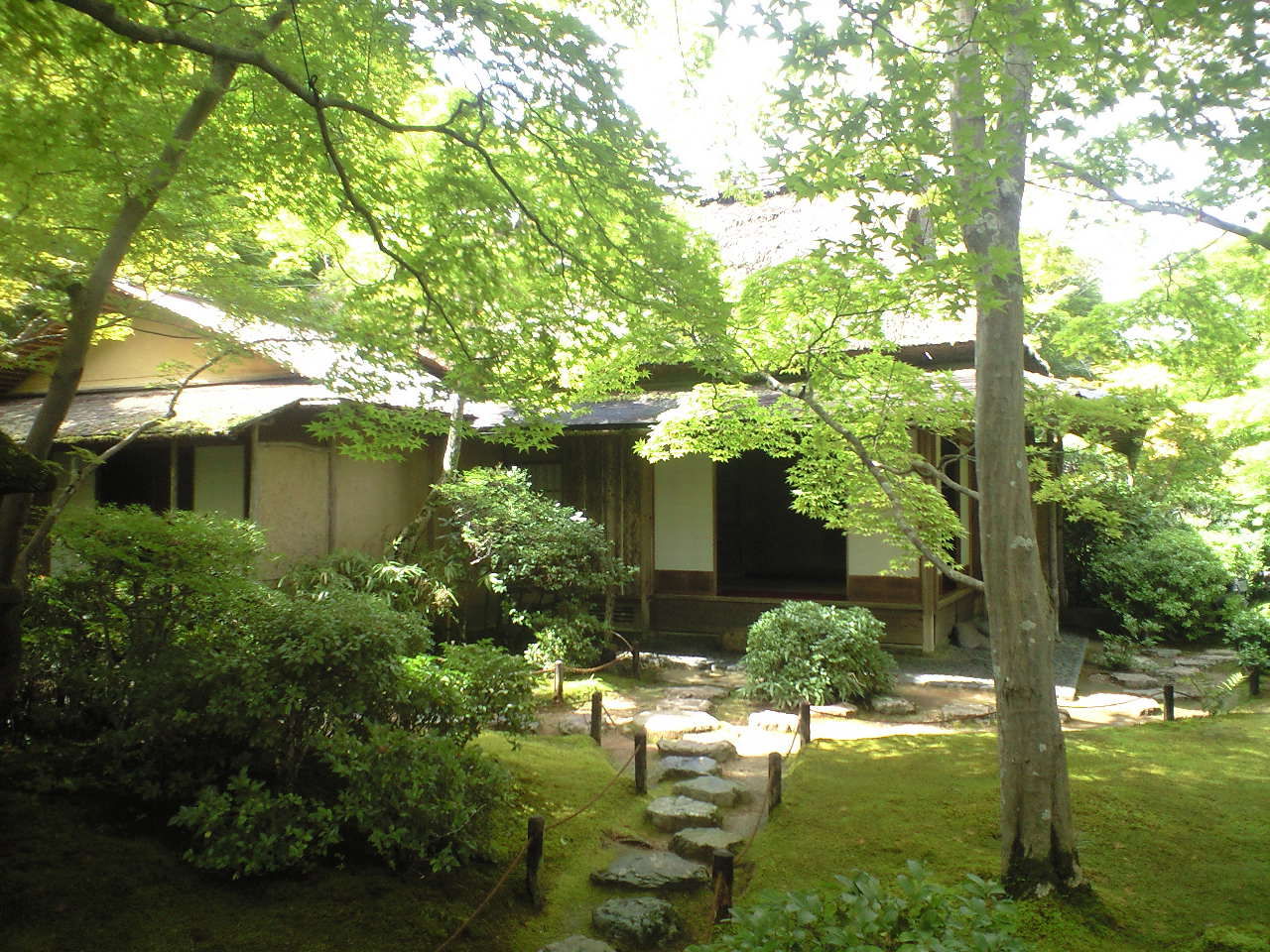茶室。江戸時代のものと言われても頷いてしまうほどの風格です。紅葉が多い邸内。11月中旬からはさぞや美しいでしょう。