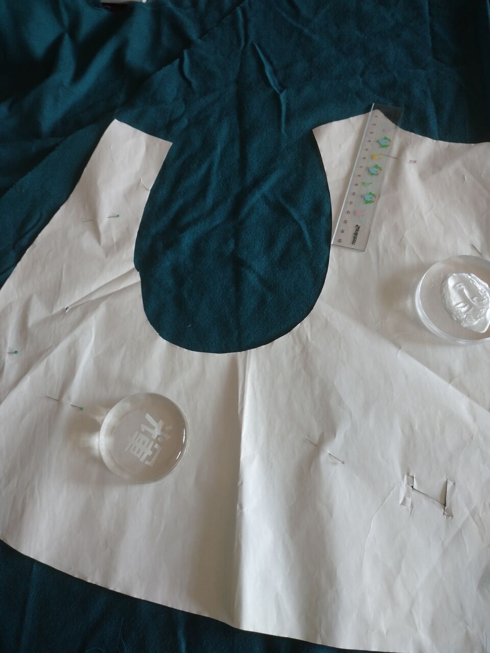 手ぬい教室では物差しが必需品。30センチと50センチの方眼定規を買い揃えました。特に洋服を作る時には、50センチの長いのがあると断然便利です。